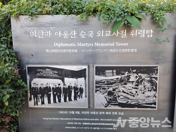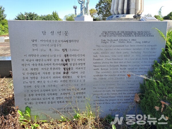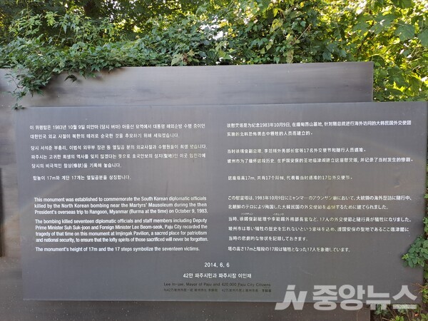 아웅산 국립묘지 헌화식 준비중 테러 발생 외교사절 순국···임진각에 세워진 위령탑